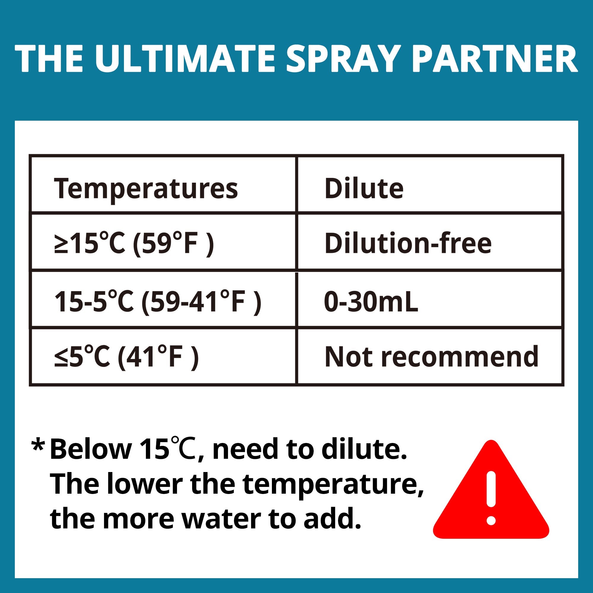 This ready-to-use water-based wood paint can be directly used with a spray gun when the temperature is above 59°F. When the temperature ranges from 41°F to 59°F, add 0−1.01fluid ounce of water. It is not recommended for use when the temperature is below 41°F.