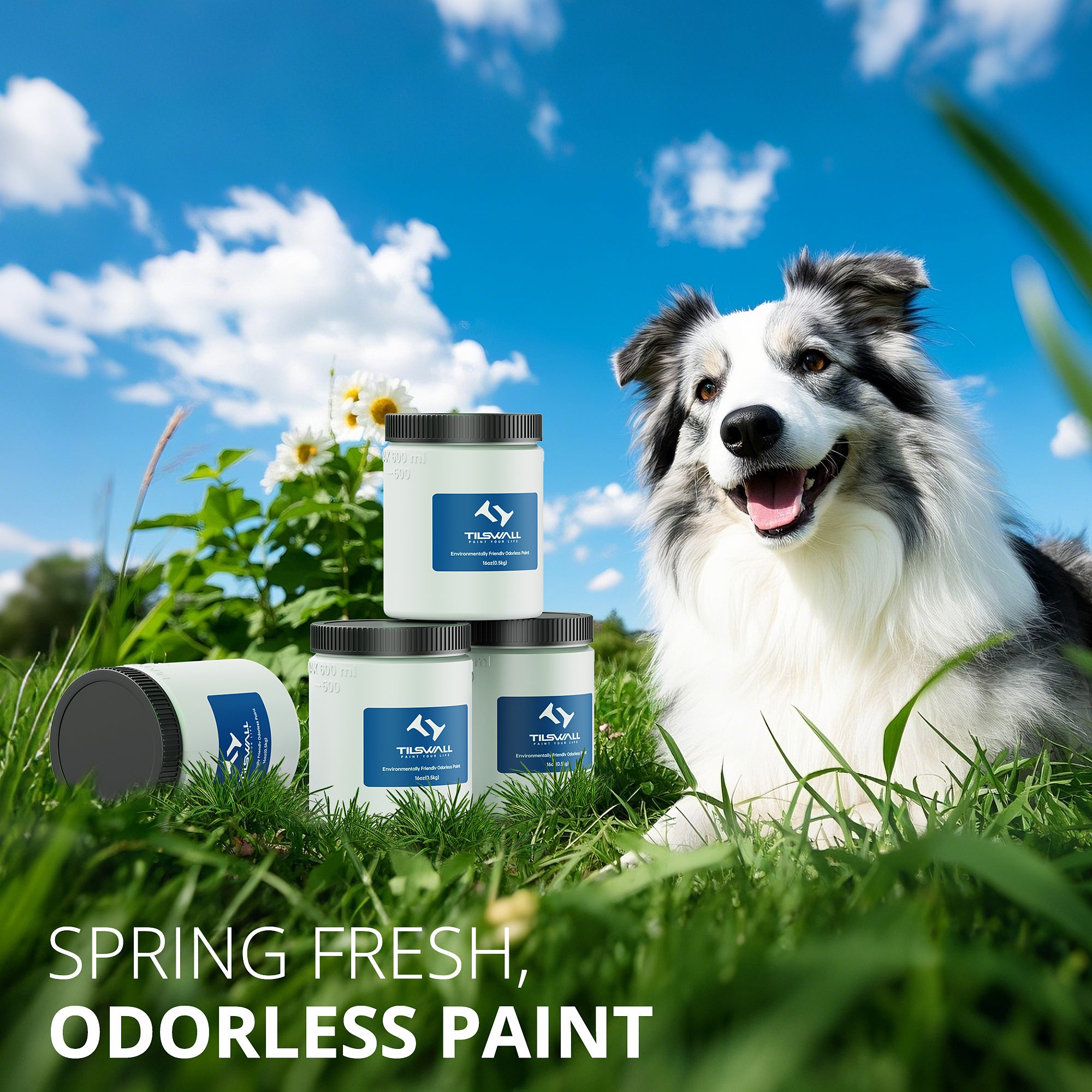 This high-quality eco-friendly water-based paint has low odor, low VOCs and heavy metals. It is safe for humans and pets, easy to clean, and does not require a thinner.