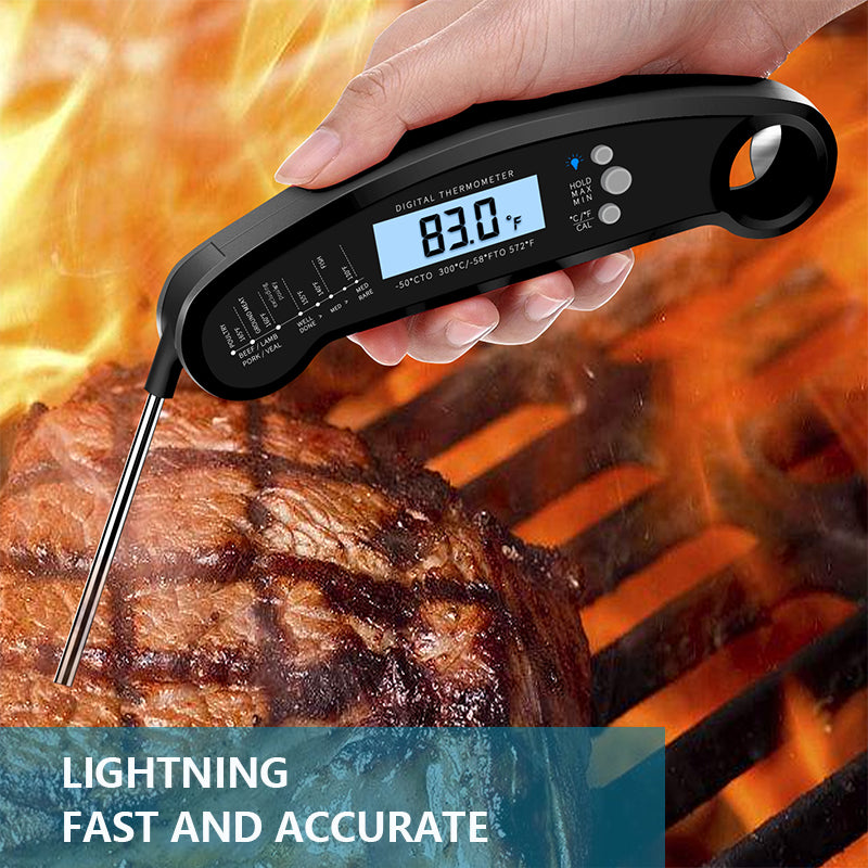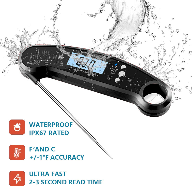 2-3 seconds fast temperature measurement, accuracy ±1°F, temperature range -58℉ to 572℉. This instant read meat thermometer is your must-have gadget in the kitchen, suitable for measuring the temperature of any type of food cooking thermometer