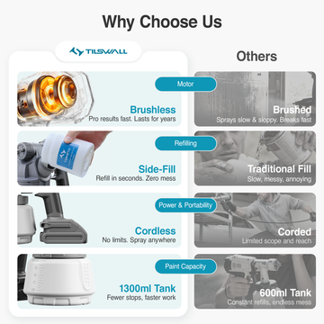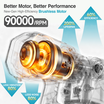 Experience superior performance with our advanced 90000 RPM brushless motor. The electric paint sprayer ensures a smoother finish, a longer lifespan, and drastically reduced vibration and noise. Pro Tip: Due to its protective start-up delay, always point the nozzle away from your target, lightly press the trigger for 2 seconds to initiate the motor, then press fully to begin atomized spraying, ensuring a flawless, spatter-free start.